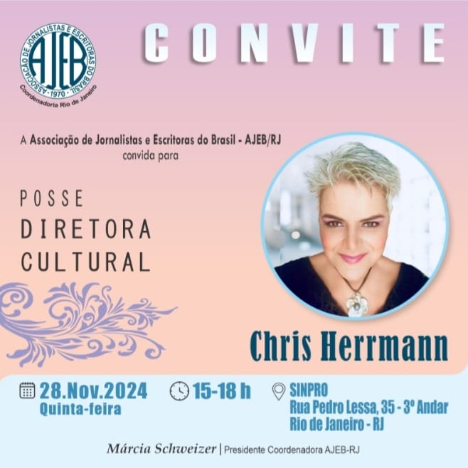 CONVITE PARA REUNIÃO MENSAL MÊS DE NOVEMBRO DE 2024 DA AJEB-RJ - ASSOCIAÇÃO DE JORNALISTAS E ESCRITORAS DO BRASIL - RIO DE JANEIRO PRESIDENTE: MÁRCIA SCHWEIZER